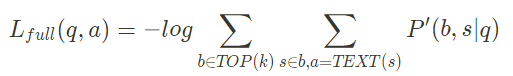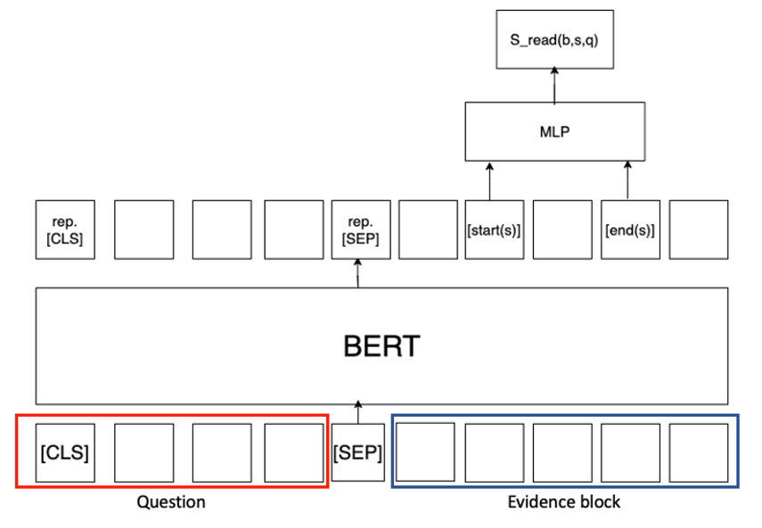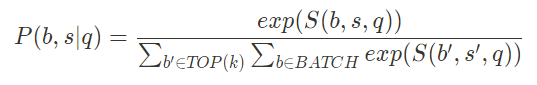 s : span of text within block b / Top(k) : S_retr ๋ฅผ ๊ธฐ๋ฐ์ผ๋ก ๋ฝ์ k ๊ฐ์ ๊ฒ์๋ evidence block ์ ์๋ฏธํ๋ค.
