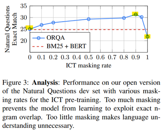 ๊ฑฐ์ ๋ชจ๋ ์์ ๊ฐ Random initialization ๋ก ํ๊ธฐ๋ ๊ฒ์ผ๋ก ์์๋์ง๋ง ICT pre-train ๋๋ฌธ์ ์์์ 10% ๋ณด๋ค ์ ๊ฒ ์์๋ฅผ ์ญ์ ํ๋ค.