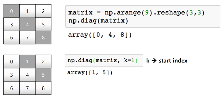대각선이 1인 행렬 생성, k 값을 사용해 시작 index 변경 가능
