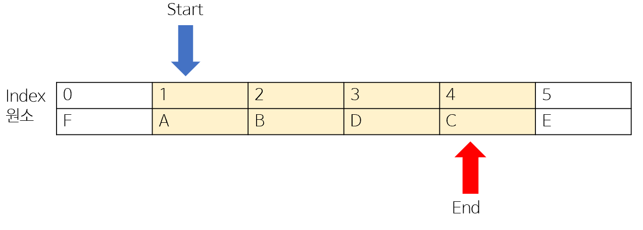 [F, A,B,D,C,E] 라는 리스트에서 원소 A,B,C를 포함하는 시작 idx(1)와 끝 idx(4)를 찾고 싶다고 할 때