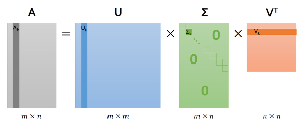 mxn 크기의 행렬 A를 아래와 같이 분해하는 걸 의미한다.