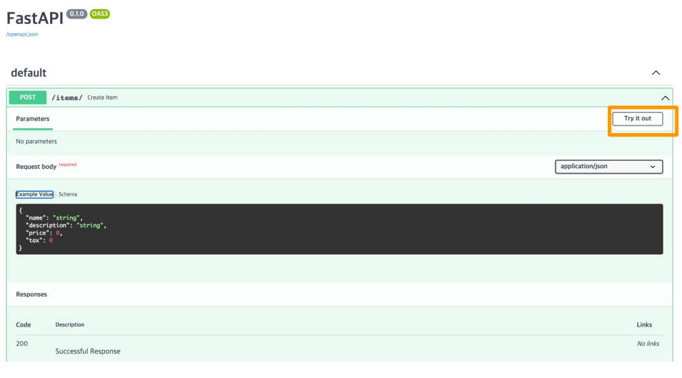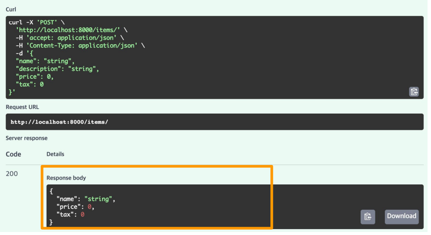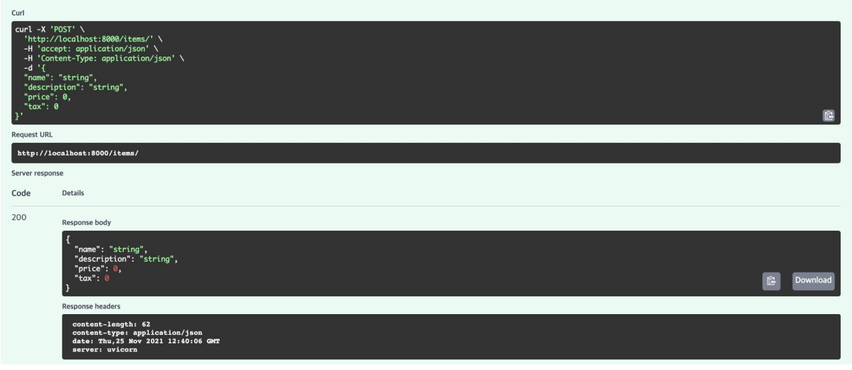 - curl 등으로 POST를 실행할 수 있지만, localhost:8000/docs로 이동