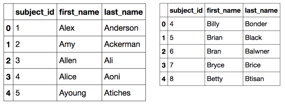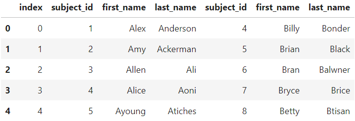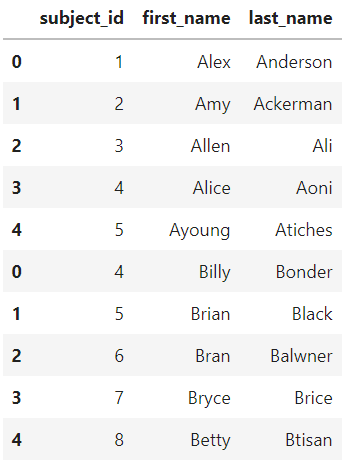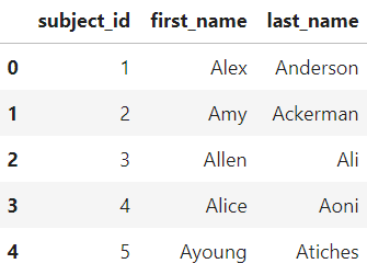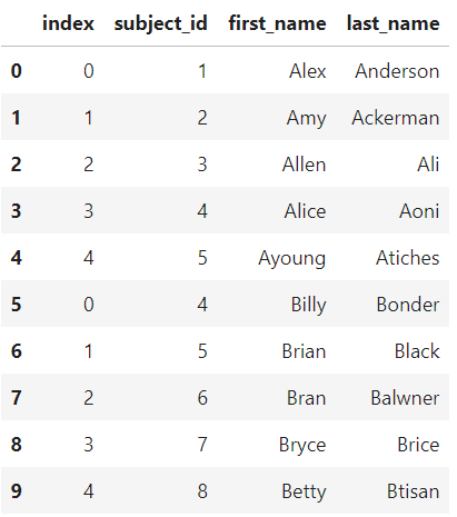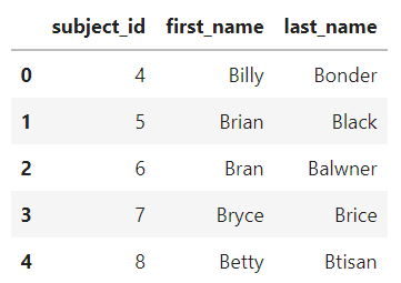df_b = pd.DataFrame(raw_data, columns = ['subject_id', 'first_name', 'last_name'])